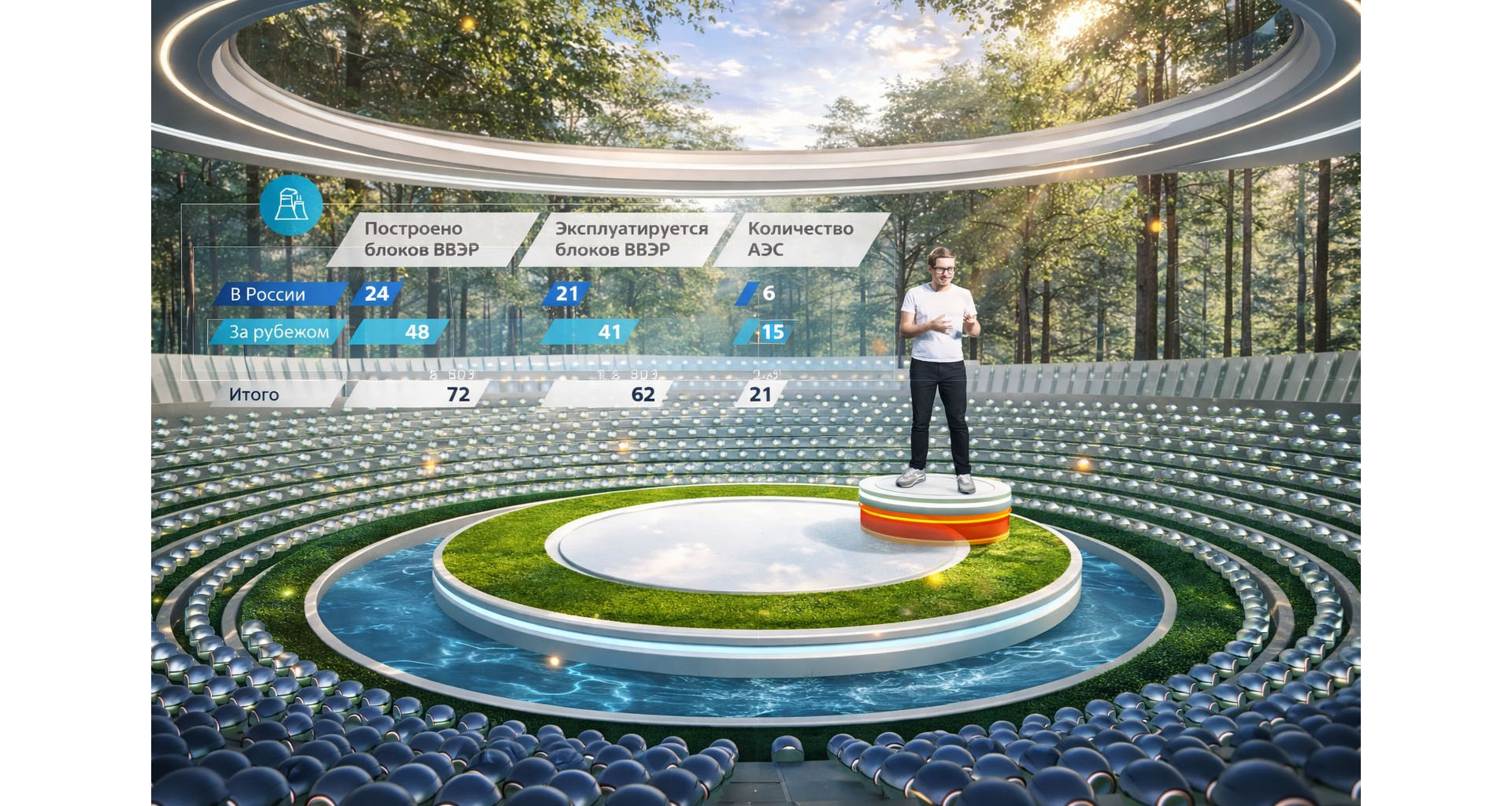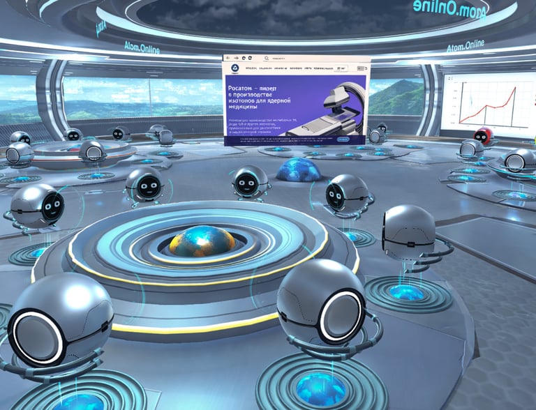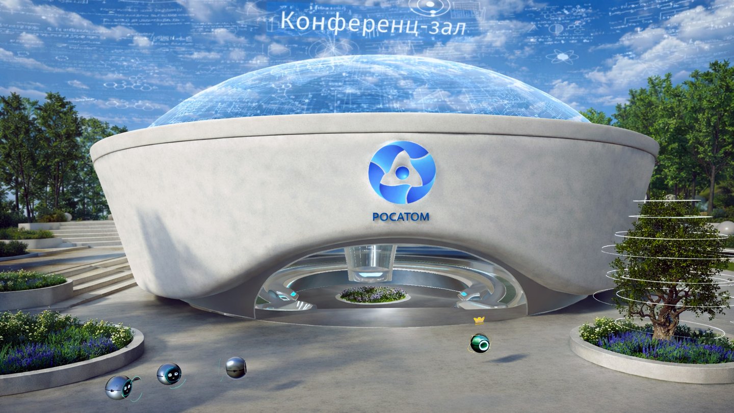 Atom.Online is a 3D, game-like virtual world developed for Rosatom during the period of widespread remote work. The platform was conceived as a shared digital environment that could support internal collaboration between employees, contractors, and distributed teams, while also functioning as a publicly accessible space for conferences, presentations, and large-scale company events.