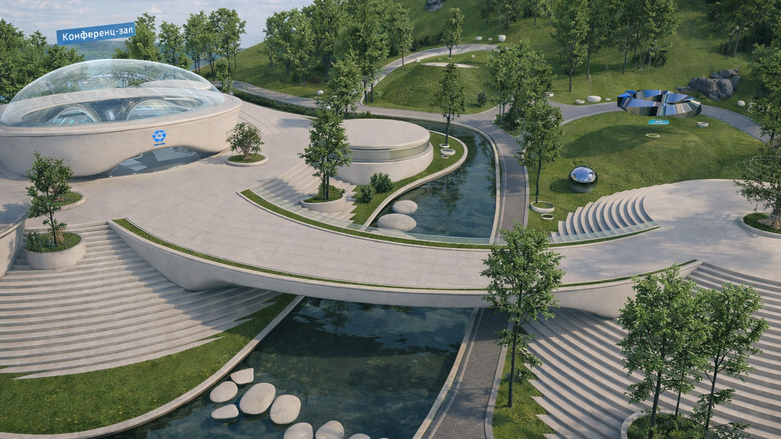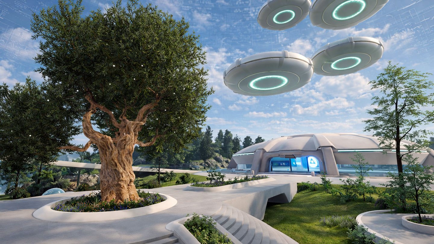 Each zone is structured around a central hub that concentrates activity and directs users toward specific actions. Functional spaces—such as conference halls, coworking rooms, or interactive exhibits—are accessed through these hubs and loaded as separate, purpose-built scenes. From the user’s perspective, this feels like moving naturally through a world that transitions smoothly into focused environments when needed, rather than navigating menus or disconnected levels.