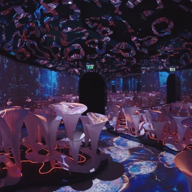 Further inside, the experience becomes more hands-on. The Lounge offers a slower observational rhythm, the Laboratory places visitors in the role of researchers modifying creature traits, and the Bathyscaphe reframes the world entirely, turning the canyon into a moving landscape on the way to the greenhouse sector. Though different in tone and interaction, each installation acts as a window into the same ecosystem, maintaining consistency in lighting, behavior, and a sense of place.
